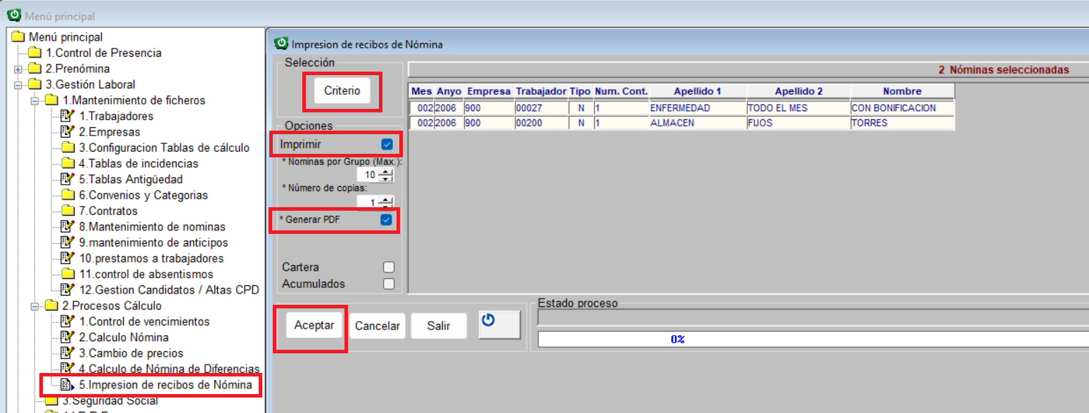 Solo se puede generar las nóminas empresa por empresa.